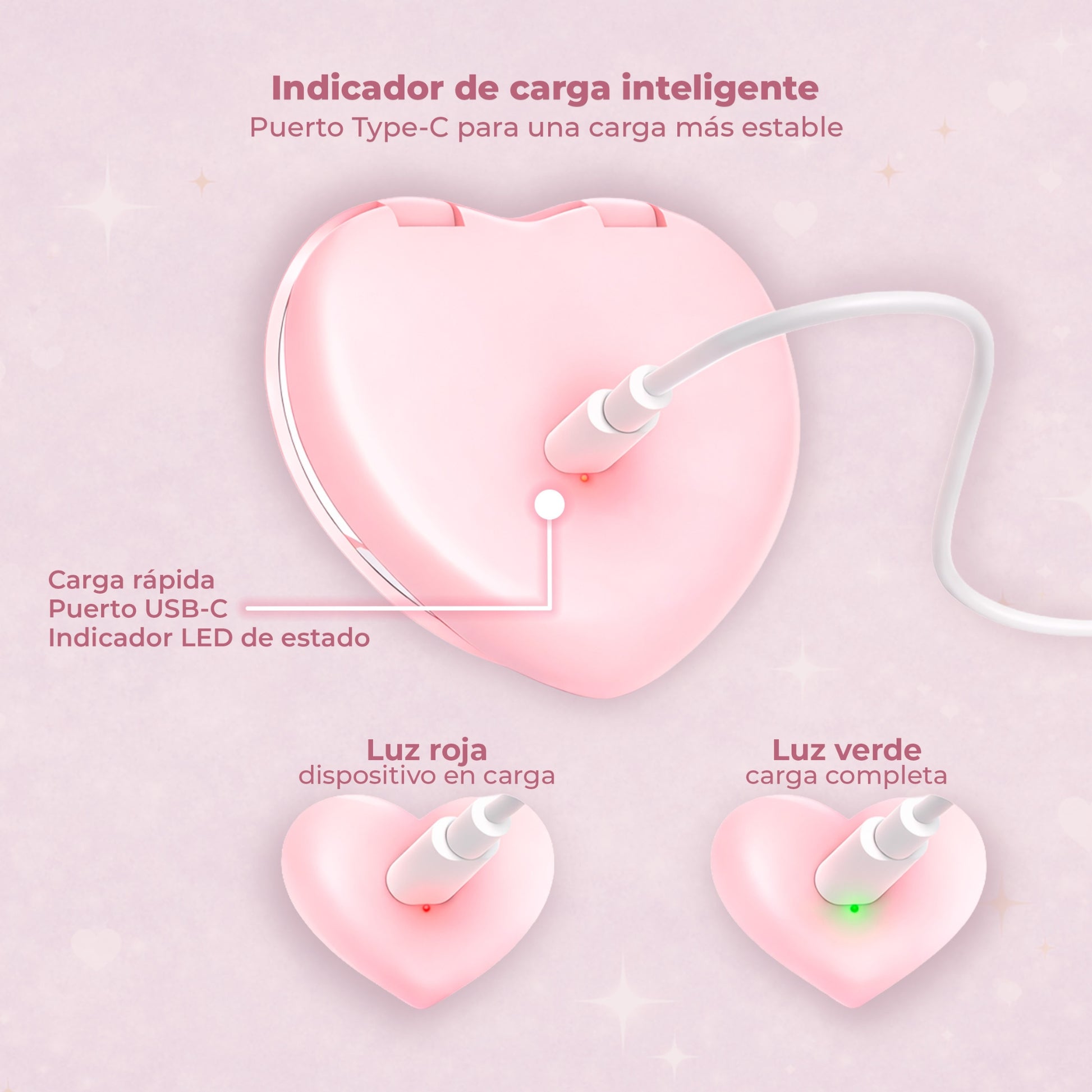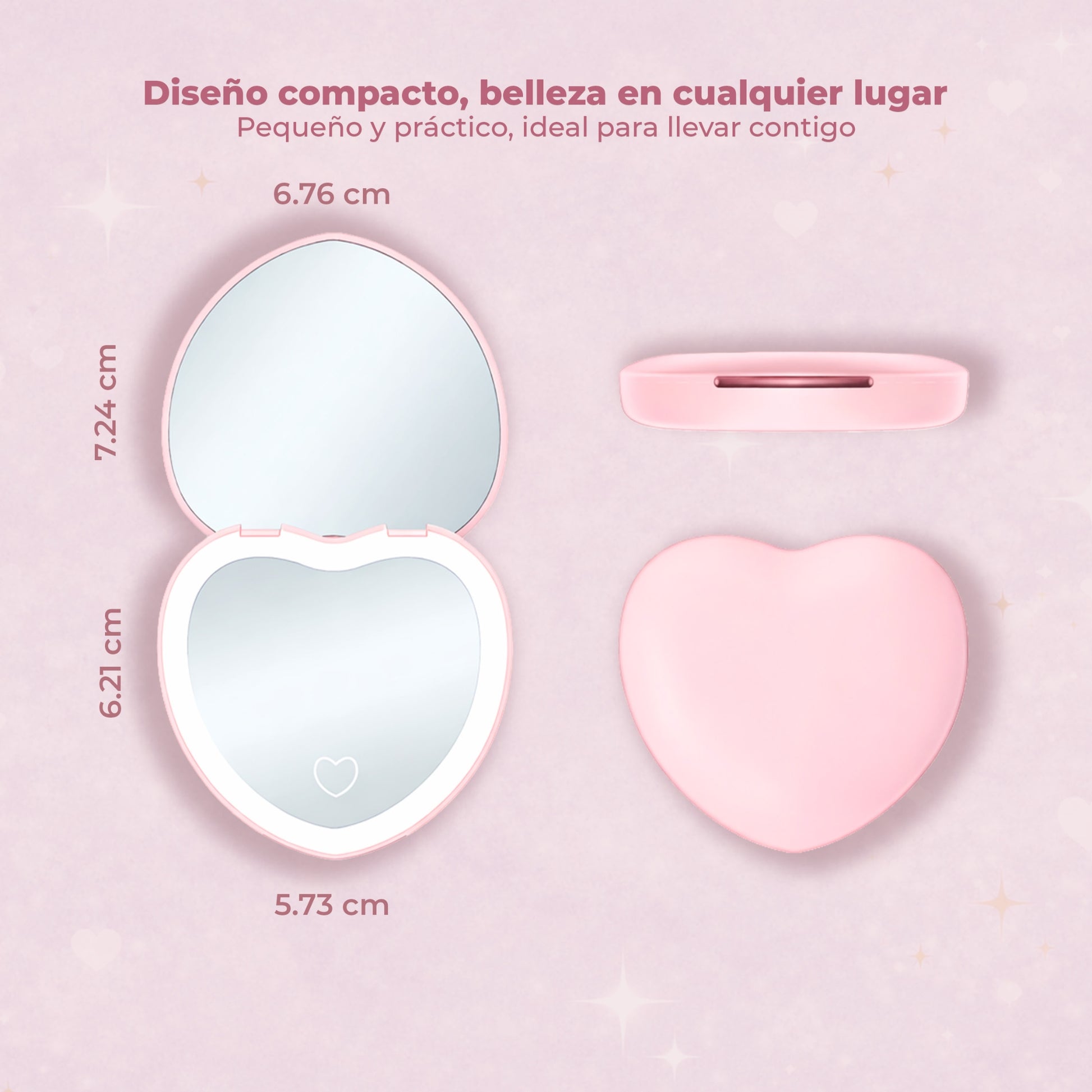 DISEÑO COMPACTO Y PLEGABLE EN FORMA DE CORAZÓN: Su diseño plegable en forma de corazón permite guardarlo fácilmente en bolso, mochila o kit de maquillaje. Este espejo de bolsillo con luz para maquillaje es práctico para llevar a cualquier lugar.
